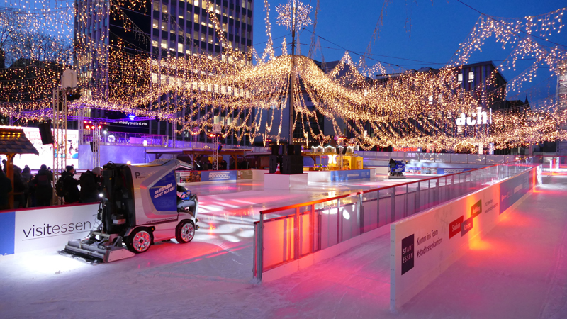 In der Wintersaison wird in Essen häufig eine temporäre Eisbahn auf dem Kennedyplatz aufgebaut. Diese Eisfläche liegt zentral und ist besonders während der Weihnachtszeit sehr beliebt. Die Eisbahn ist meist von November bis Anfang Januar geöffnet. Die Eintrittspreise liegen hier höher als in der Eissporthalle und bewegen sich häufig zwischen 8 und 12 Euro. Schlittschuhverleih ist in der Regel möglich und oft im Eintrittspreis enthalten oder kostet einen kleinen Aufpreis.